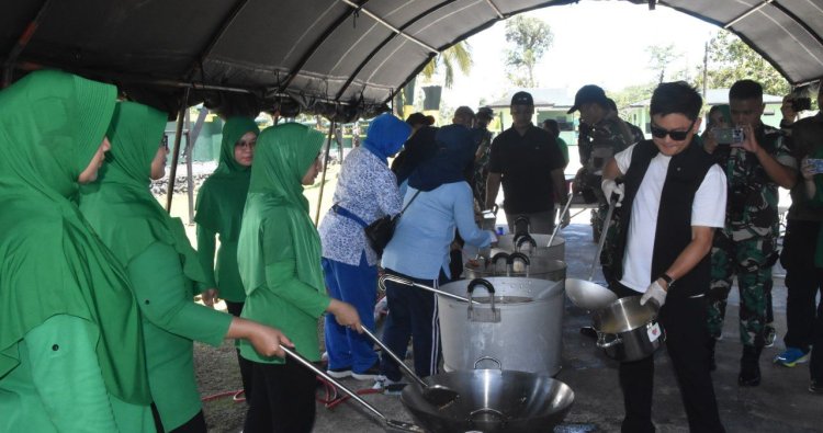 Timika - Bertempat di Lapangan Upacara Makodim 1710/Mimika, Kodim 1710/Mimika bersama Kogabwilhan III berkolaborasi dengan Youtuber Bobon Santoso menggelar Masak Besar dan Olahraga Bersama Dharma Pertiwi Cabang Mimika, Senin (13/10/2025).
